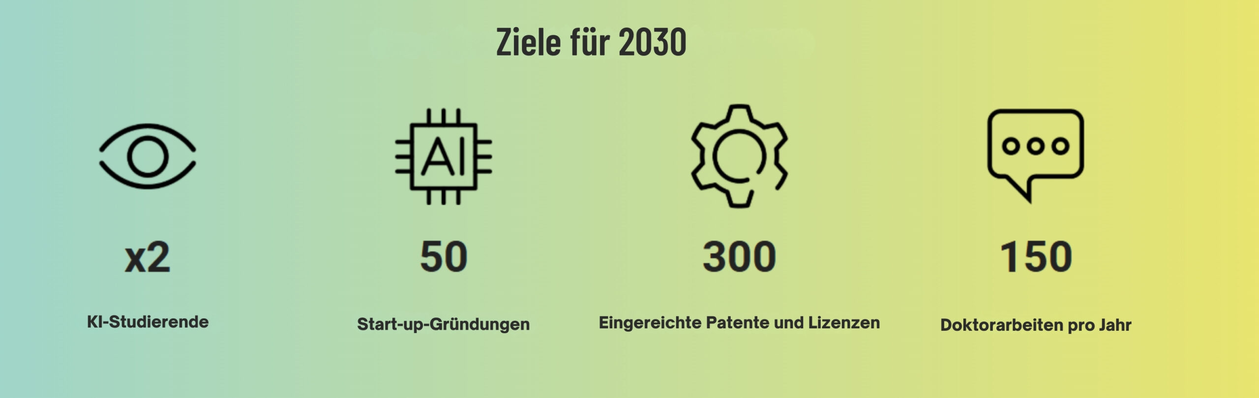 Das Ziel besteht darin, die Anzahl der ausgebildeten Personen, insbesondere in KI-Studiengängen, zu verdoppeln. Das Projekt zielt auch darauf ab, KI in bestehende Studiengänge wie Chemie, Biologie und Medizin zu integrieren. Überlegungen und Experimente zur pädagogischen Innovation und zur Weiterentwicklung von Bildungsinhalten, die KI integrieren, werden ebenfalls durchgeführt.