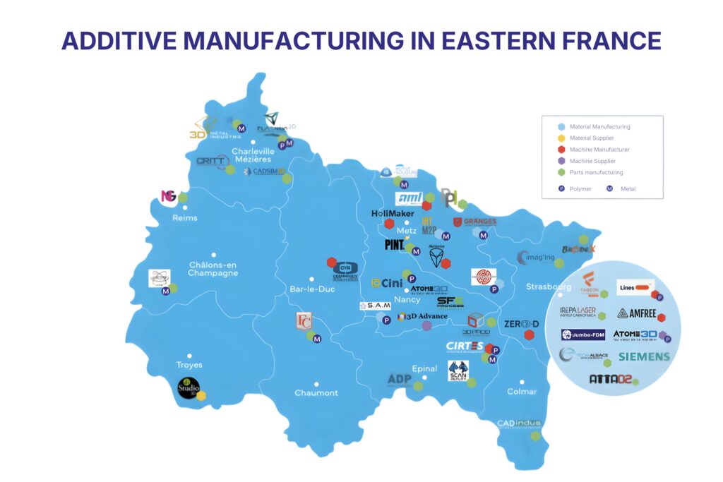 Eastern France is recognized for its expertise in large-scale additive manufacturing, including prototypes, tooling, and industrial parts.