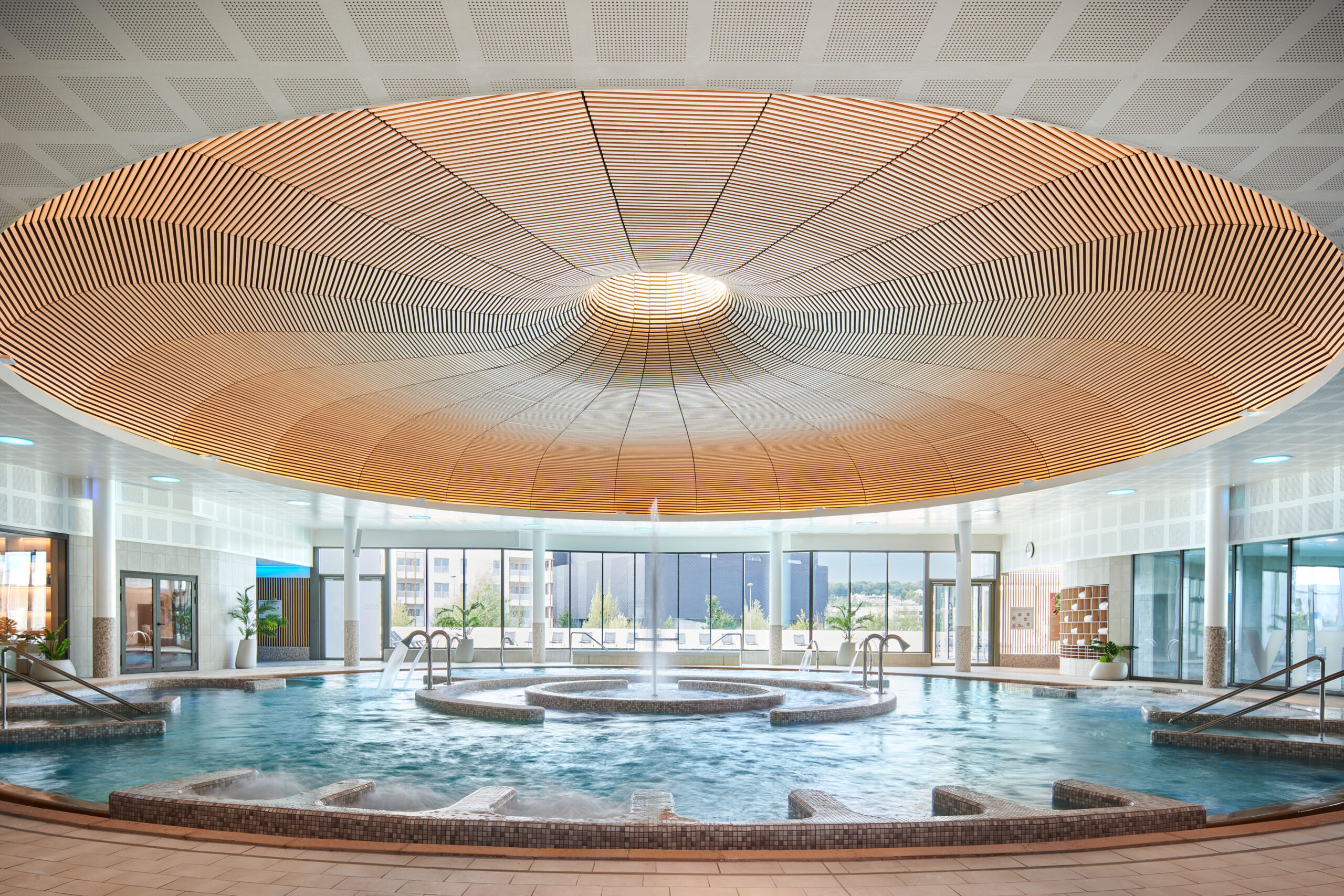 The new facility combines wellness areas, aquatic activities, and spa services across 5,000 square meters. It also offers high-end amenities accessible to a wide range of visitors.