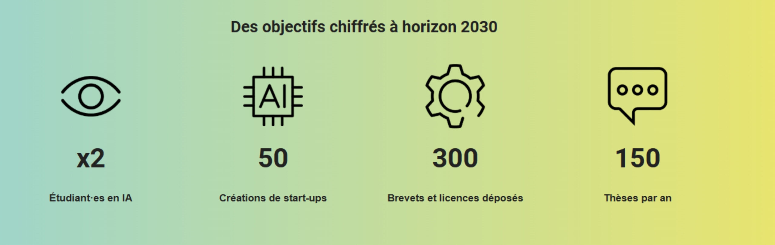 Il est prévu de doubler le nombre de personnes formées, notamment dans les parcours universitaires en IA. Le projet vise également à intégrer l’IA dans des parcours universitaires existants, tels que la Chimie, la Biologie et la Médecine. Des réflexions et expérimentations seront également menées sur l’innovation pédagogique et l’évolution des contenus pédagogiques intégrant l’IA.